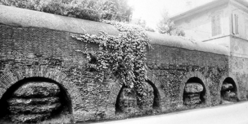 I ruderi esistenti in piazza Ronchi sono probabilmente pertinenti ad una cisterna costruita in opera laterizia, con uso di mattoni gialli e rossi e nucleo interno in scaglie di tufo.