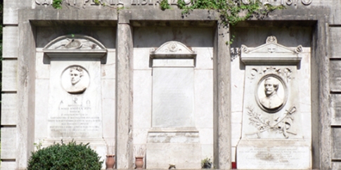 - monumento al Generale Pietro Roselli; tomba Rosalia Montmasson Crispi; Sepolcreto dei caduti nella lotta per la Liberazione 1943 – 1944; colonnina telefonica, installata nel 1946 dalla Teti, durante le riprese di Germania anno zero di Roberto Rossellini (in collaborazione con AMA); monumento alle Ignote Vittime delle incursioni aeree 1943 – 1944; monumento alle Vittime dell’Aventino, Medaglie d’oro