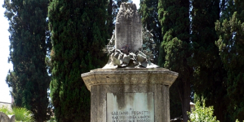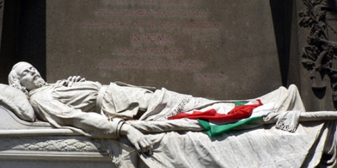 Monumento funebre di Goffredo Mameli (1827-1849), patriota e poeta, autore delle parole dell’inno nazionale italiano, morto in seguito alle ferite riportate nella battaglia del Vascello durante la difesa della Repubblica Romana (1849).