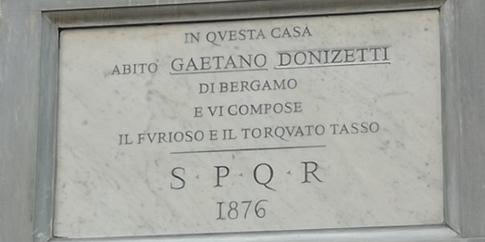 La lapide apposta dal comune di Roma a segnalare il luogo di permanenza del compositore, mostra all’occhio attento un dettaglio curioso.