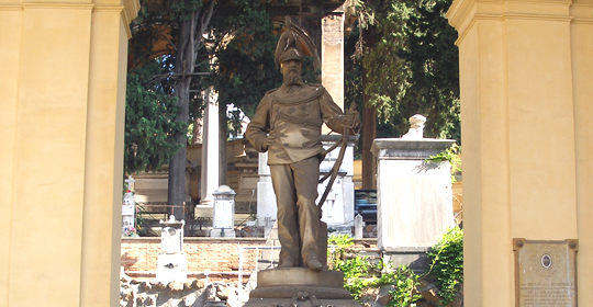 Il monumento sepolcrale, realizzato dallo scultore Giulio Monteverde (1837-1917) è ubicato nella XLII arcata del braccio sinistro del Quadriportico. L’opera, commissionata dalla vedova del generale come testimonia l’iscrizione, segue lo schema tipologico del monumento celebrativo, con un’imponente statua impostata su un alto basamento, isolata al centro dell’arcata. La figura del generale è ripresa in piedi, in alta uniforme mentre impugna la sciabola con la mano sinistra. Eseguita con intenti realistici, la scultura mostra una cura particolare nella ricostruzione dei tratti fisiognomici e nella descrizione della divisa militare. Dell’opera si è conservato il modello in gesso, custodito presso la gipsoteca Giulio Monteverde di Bistagno.