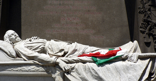 Monumento funebre di Goffredo Mameli (1827-1849), patriota e poeta, autore delle parole dell’inno nazionale italiano, morto in seguito alle ferite riportate nella battaglia del Vascello durante la difesa della Repubblica Romana (1849).