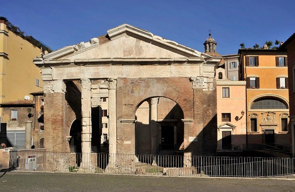 Il complesso del portico d'Ottavia prospiciente sul Circo Flaminio (area che corrisponde all'antico ghetto) fu ricostruito da Augusto, al posto del più antico portico di Metello, tra il 27 ed il 23 a.C. e dedicato alla sorella Ottavia.